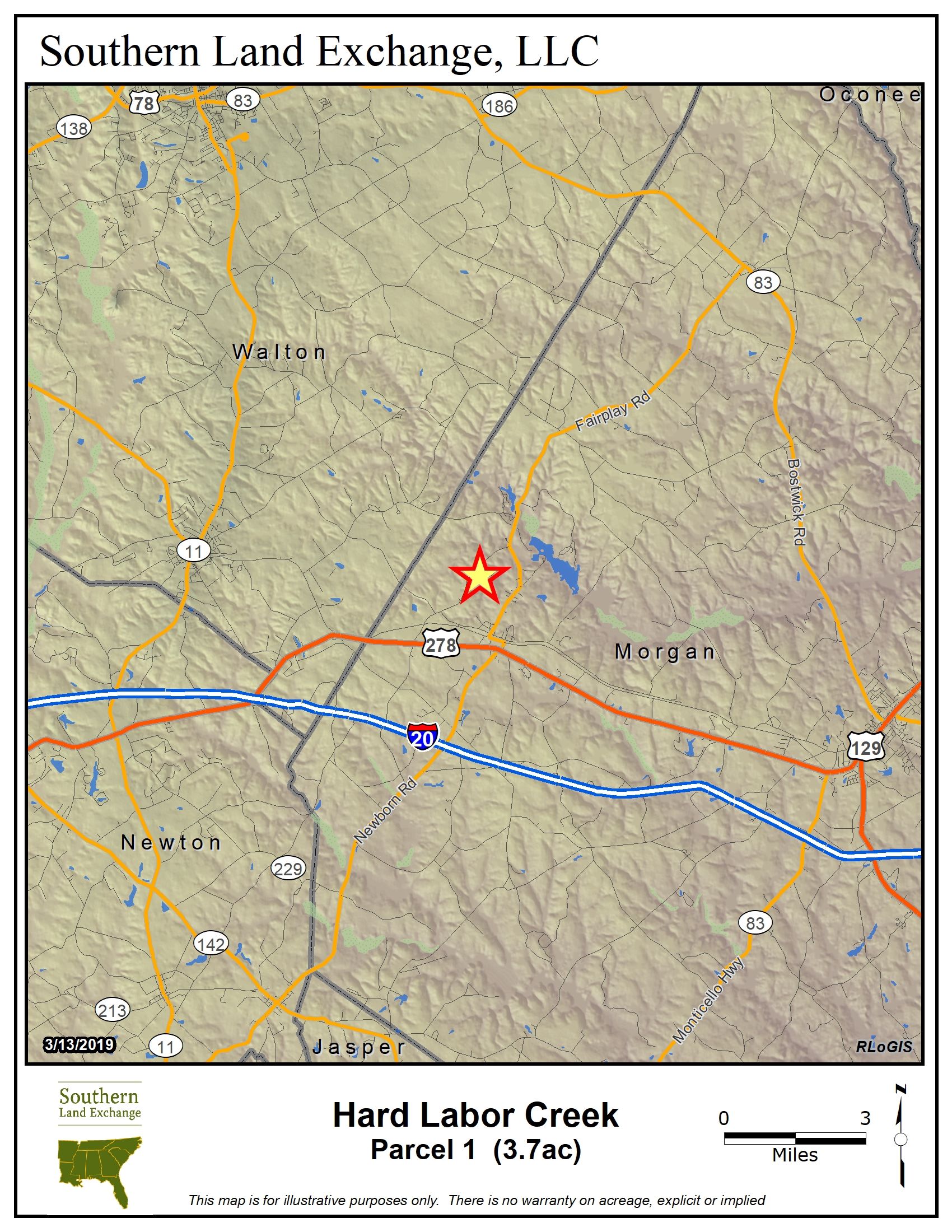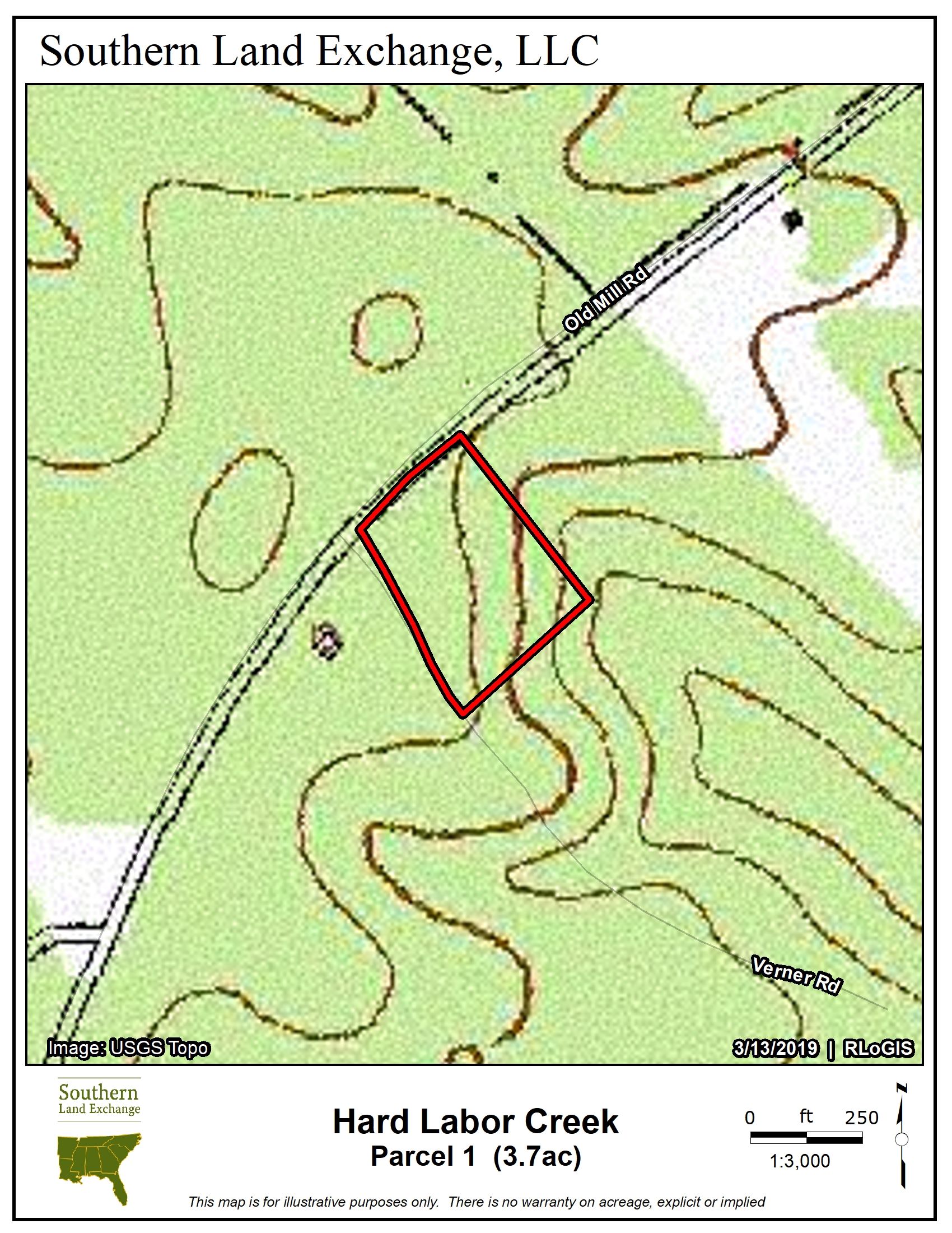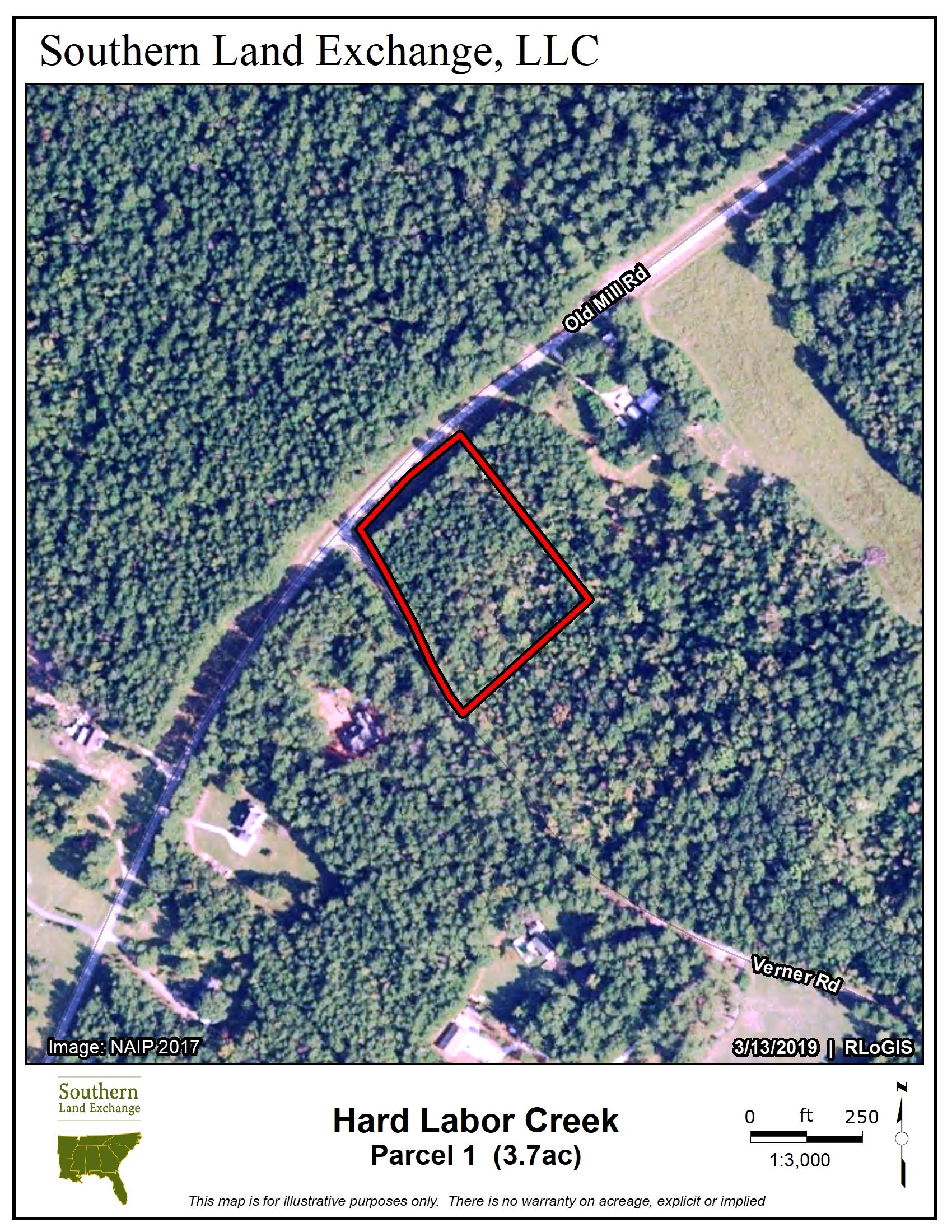 Come enjoy this 3.7 acres of natural forest that is adjacent to one of Georgias premier state parks, Hard Labor Creek, where you can enjoy golf, horseback riding, fishing, hiking and mountain bike riding. This property is perfect for the nature enthusiast and has an ideal habitat for wildlife including deer and turkey that you can enjoy watching from your deck. The perfect home site on this corner lot facing Old Mill Road offers a great location for a basement home and you also have access to Verner Lane. Parcels 2 and 3 are also available for sale. The small town of Rutledge is only 5 minutes away, historic Madison is just 20 minutes to the east and Atlanta an hour west on I-20.
