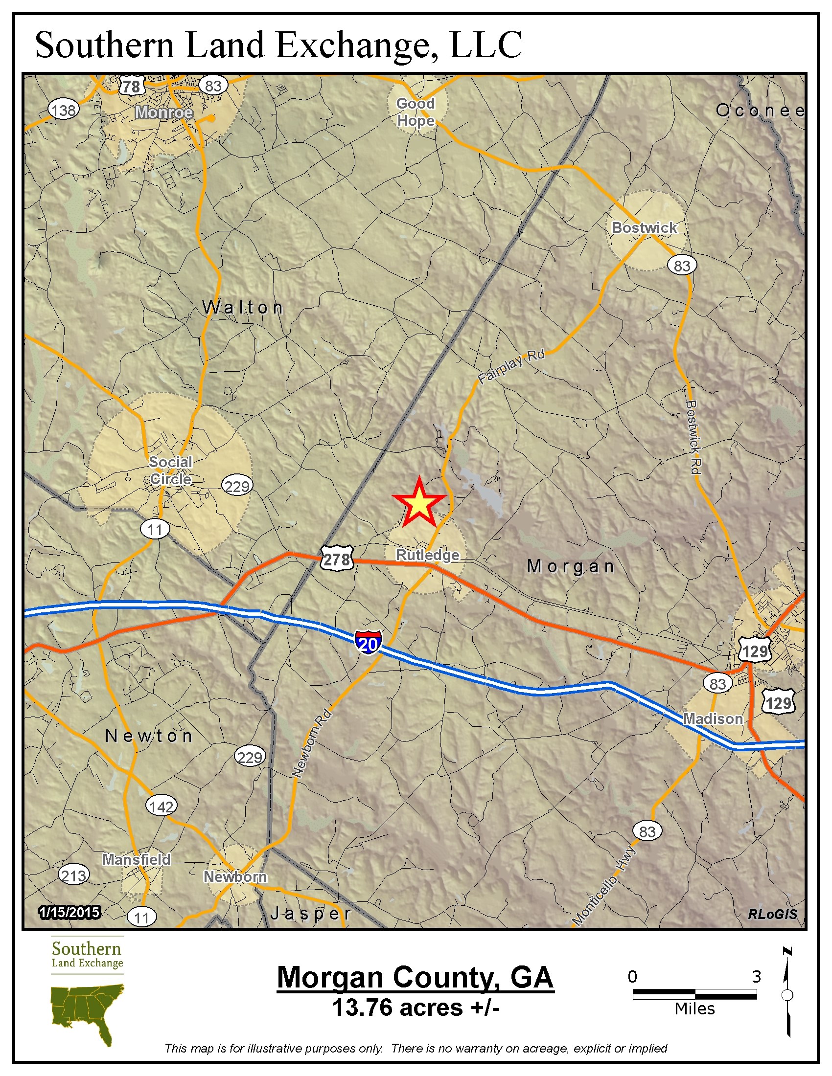 This 13.76 acres of natural forest is adjacent to one of Georgias premier state parks, Hard Labor Creek. A spring and creek on the property create an ideal habitat for wildlife that you can enjoy watching from your deck. The perfect home site on this corner lot facing Old Mill Road offers a great location for a basement home. The small town of Rutledge is only 5 minutes away, historic Madison is just 20 minutes to the east and Atlanta an hour west on I-20.