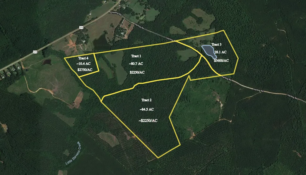 Meybohm Commercial is pleased to present this gently rolling 200-acre tract located in northern Edgefield County near the Saluda County line. With a variety of possible tract configurations, just enough timber remaining to maintain its beautiful aesthetic, and many potential cleared homesite locations, this property is a great opportunity to own a piece of tranquil Edgefield County living. The property features an approximately 2 acre pond and is being offered as a whole or as individual tracts. The property has the potential for use as several homesite tracts, or use as a secluded recreational tract(s). Harling Rd. is rarely accessed, which makes for very secluded and private tract. Surrounding uses include several homes along Highway 378, several planted timber tracts, and agricultural acreage. Mobile homes are not permitted.
