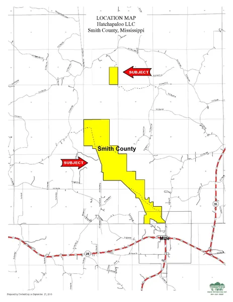 The tract is located about an hour southeast of Jackson near Mize. It is near the intersection of Highway 28 and 35. It is located in Sections 9,21,27,28,34,35 T1N,R7E. It fronts Smith County Rd 77 (AKA N. Oak St)which is paved, and the tract has good internal access provided by a raised bed dummy line road.