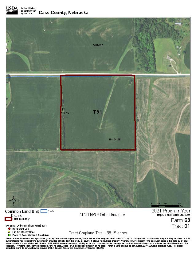 40 Deeded Acres - No Buildings The NE NW located in Section 17, Township 10 North, Range 12 East of the 6th PM, Cass County, Nebraska (40 +/- Deeded Acres.)