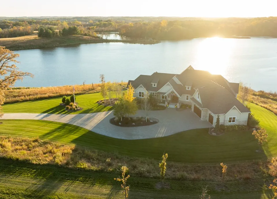 Arriving at Haven 189, a powered entrance gate welcomes you to an elegant residence set among rolling hills, native prairie grasses, mature landscaping, and scenic water views.