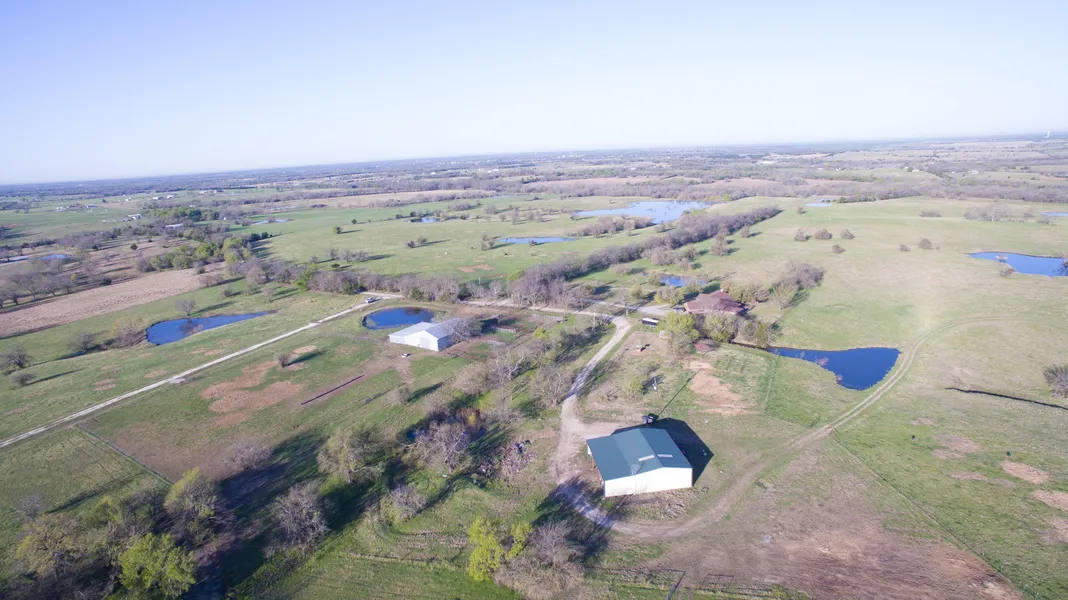 Terrain is rolling with an ideal mix of elevated uplands and fertile bottom land. Ownership has developed over 30 ponds and lakes on the property and it is also traversed by both the North Sulphur River and Rainbow Creek. Improved grass pastures are predominantly coastal but are complimented by a diversity of native grasses and an abundance of spring ryegrass, clover, vetch and peas. Developed through careful study of terrain, with a focus on rotational grazing and regenerative agriculture, the ranch boasts 16 pastures and multiple traps and lanes. An elevated road system has also been constructed to make the entirety of the ranch accessible even during wetter winter months. A very well constructed shop with living quarters and large equipment overhang allow for storage of ranch necessities and provide accommodations for guests or employees. Additional improvements include a classic pole barn with south facing animal shelter and cattle processing and weaning pens.