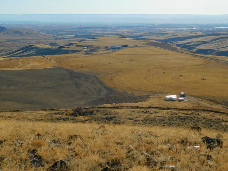Hidden Mesa Ranch is a very private, highly improved property with amazing views in every direction. This farm/ranch consists of 600 +/- acres with approximately 190 acres irrigated. Good water rights. All irrigation water is delivered via underground pipelines to 3 Reinke pivots, 3 side roll sprinklers and gated pipe. Other improvements include; New 60x100 steel frame shop, 40x72 shop, 40x128 equipment/hay shed, numerous other outbuildings, and 2131 sq ft home. Perimeter fences are in excellent condition and less than 10 years old. 5700 ft. runway and airplane hangar. Gravel possibilities. This is a unique, one of a kind property!