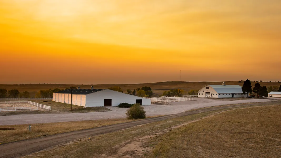 Hidden Pines Equestrian Center, formally known as Flyer Ranch Equestrian Center, with hay production, located minutes outside of Kiowa Colorado on Comanche Creek, is a state of the art equine facility on 500 +/- acres with one mile of Comanche Creek with live water.