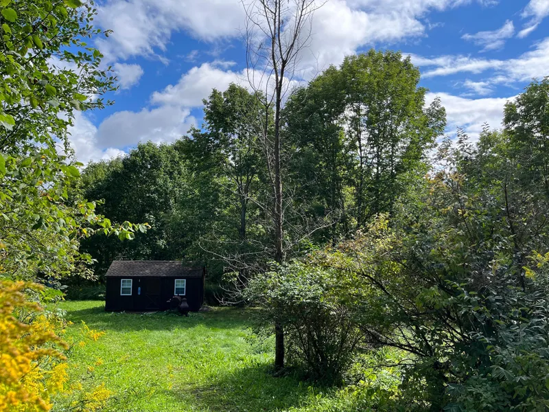 Beyond the gate and set back from the road lies a private, flat potential building lot currently occupied by an upgraded shed that was transformed into a quaint heated lodge. Perfect for a few overnight visits to allow for an early wakening to start the day off in the woods, ready for the sunrise and the wildlife to appear. A sturdy custom-built blind has been thoughtfully placed alongside one of two seasonal streams winding their way through the property. Four separate paths were created for walking or ATV to explore the entire property. Several clearings can easily be adaptable to plant food plots or additional apple trees to encourage the animals to stay and enjoy the habitat. Several other types of trees reside here, including oak, walnut, maple and birch. Watch the vibrant leaves change color in the fall season and take advantage of the cool brisk nights surrounding the fire pit wit...