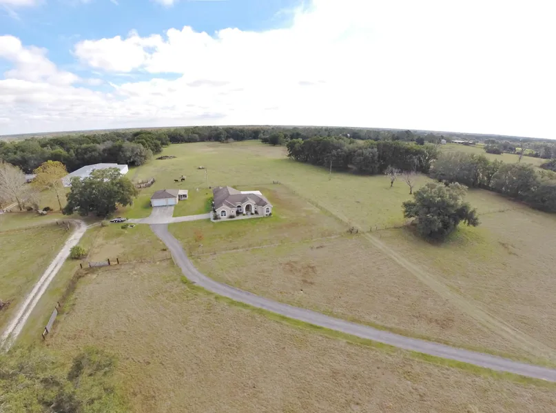 Gorgeous home on 24.42 acres of high and dry pasture. Hardwood Brazilian Cherry welcomes you into this formal living and dining area with lovely views via sliding doors across the 30x30 screen porch overlooking private acreage. The spacious kitchen is located in center of the home with loads of cabinet and pantry area, 42" CHERRY CABINETS, solid surface counters, stainless appliances, breakfast bar and dinette area that overlooks the screen porch. The great room is spacious and provides easy access to the screen porch and 3 secondary bedrooms. Located off the formal area you will find an elegant master bedroom with views of pastures, his and her closets, elegant master bath with garden tub and walk-in shower. In addition to the attached garage this property provides additional 3 CAR DETACHED GARAGE and WORKSHOP complete with Man Cave and it's own private 12x20 screen porch. Septic System new 2016, carpet in bedrooms, wood floors in master and great room all new in 2017. Porcelain tile in all wet areas. Add to all of this thermal barrier & added insulation in attic, hot water recovery system w/ heat pump, wired for whole house generator, new septic system 2016 & screen room ceiling is insulated.Located near Little Everglades Ranch so adjoining properties are acres and acres of open pasture land & oak trees. Note that this property includes two parcels 12.21 acres each. Take the video tour w/ aerial photos