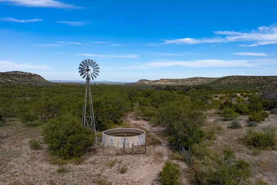 The terrain on the ranch is incredibly diverse; varying from caliche Mesas' offering tremendous views to Shin Oak filled finger canyons and Live Oak and Mesquite filled bottoms with deeper soils. The ranch is fenced and crossed fenced into multiple pastures with fences generally being in good condition. There are numerous stock tanks located throughout the ranch, in addition to these tanks, there are 6 windmill wells and 3 submersible wells located on the property that provide water to multiple troughs.