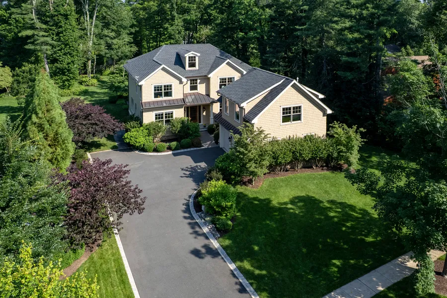 Behind this nearly new 2019 luxury home, just a few doors down from Riverside School, a landscape-architect-designed backyard strikes the perfect balance between natural and manicured. A covered deck presents the ideal spot to gaze over this private sanctuary, served by a smart in-ground irrigation system that also keeps the lush front lawn picture-perfect. Large windows bring green views into open living spaces defined by custom molding and coffered ceilings, while Lutron smart light switches set the mood with a tap. A big gas fireplace anchors the family room and a second one in the living room is clad in stone. The chef’s kitchen boasts a commercial-style fridge and a Thermador double range, and entertainers will love the extra-thick quartzite island and nearby beverage bar. Overnight guests enjoy a roomy apartment-style suite with its own entrance, or, if stairs are a burden, a first...