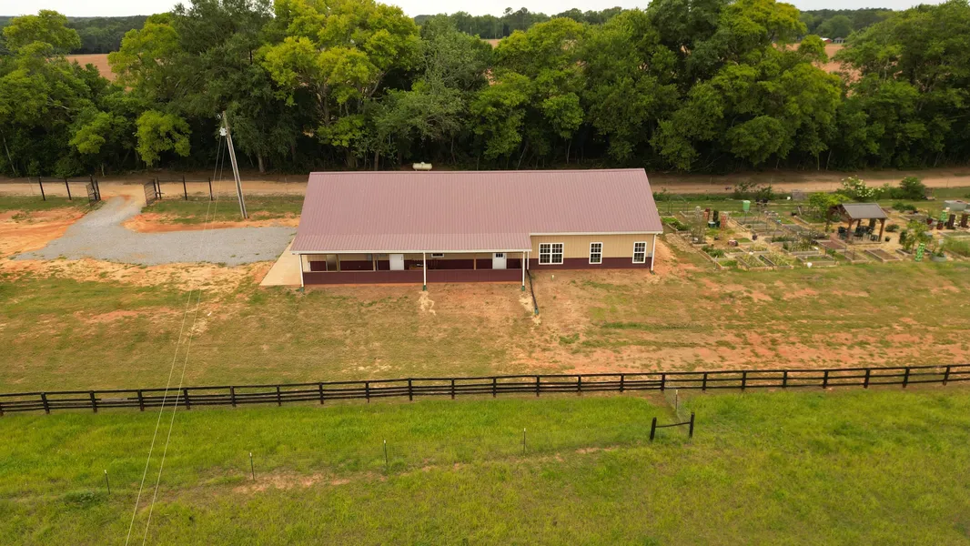 This high-fenced property offers the opportunity for full-time living, weekend enjoyment or a working farm with hunting and recreational features. The majority of the property is high-fenced for whitetail deer and has assets that currently produce income from hunting, haying, pine timber harvest and horse boarding. The property has a newly constructed three-bedroom, three-bathroom barndominium style home that would work well for full-time living, hunting and recreational enjoyment or lodge-style amenities. A large open-air horse and equipment barn is on the property with five horse stalls, a tack area, a wash bay area and a round pen under the barn. The extra living quarters on the property consist of a 2001 five-bedroom, three-bathroom used mobile home down the hill from the main home and a nice enclosed pole barn-style shop with two large roll-up doors, perfect for maintaining or storing your farm equipment. The land is made up of mature pine plantations, along with a nice mixture of mature pine and hardwood areas and plenty of good bedding areas. Food plots are established and the high-line power easement provides an open range area for haying and game plot space. The owners farm the property with planted perennial peanut hay on the powerline area and the food plot areas. You’ll want to check out the garden area with raised beds, chicken coop and goat barn for other on-site sustainable farm assets. This property is gated and will be shown by appointment only. Call today to learn more or to schedule a tour.