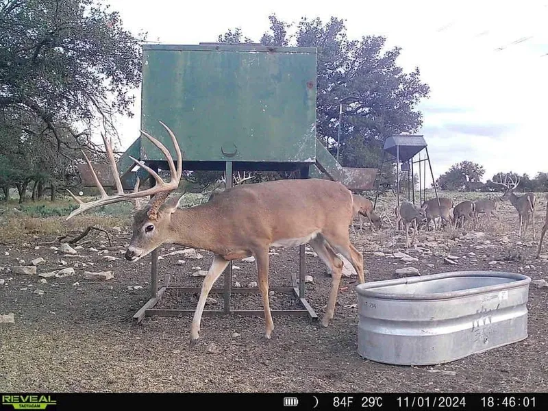 The ranch has 3 deer blinds, 4 protein feeders, and 5 corn feeders that will convey. There is a well fed pond in close proximity to the lodge. The whitetail on this property have been under intensive management and would be what most would consider exceptional quality. The seller has been selective harvesting and managing this ranch to grow typical bucks. 150-250 deer are common and the majority of deer harvested are 4 years old or older.