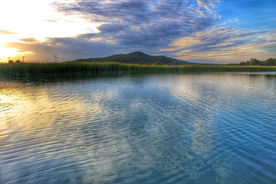 Beautiful stocked 5 acre lake just below the Hideout Lodge area as well as approximately 10 other ponds and stock tanks scattered throughout the ranch. One of the other larger ponds is around 2.5 acres when full and has dead timber on the catch side of the pond making it a great bass pond. There have been several trophy bass that have been caught from this pond! The gorgeous lake below the lodge is blue to clear water and has a sandy bank perfect for swimming, and a full size covered boat dock with electricity and boat lift. The dock is ideal for swimming or fishing entertainment and allows covered storage for smaller boats. Near the center of the lake is a lighted water fountain that gives a phenomenal look to the blue water and also provides aeration for the fish. Excellent deep water wells are a huge asset to the property. These water wells are high volume, good quality, and provide plenty of fresh water to all of the improvements, water troughs for livestock and wildlife, and even can be used to supplement the ponds in low rainfall periods!