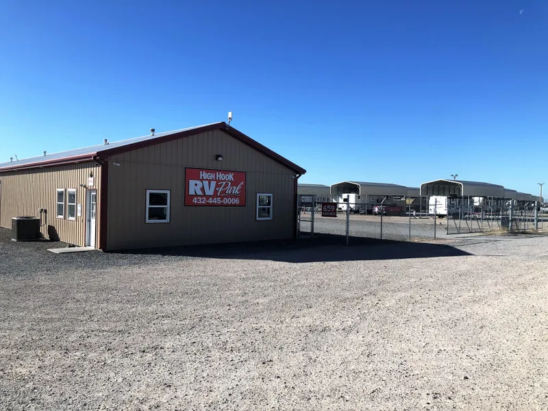 The High Hook RV Park is located just 2 miles north of Pecos, Texas. It sits conveniently between Highway 285 and FM 1216 along Allison Crane Road. The Interstate and airport and just over 4 miles away. This park has been set up due to demand during the oil boom that has hit West Texas. It is gated, accessible only by a security code, and fully fenced. Each RV spot is covered and has ample space for your RV and truck.