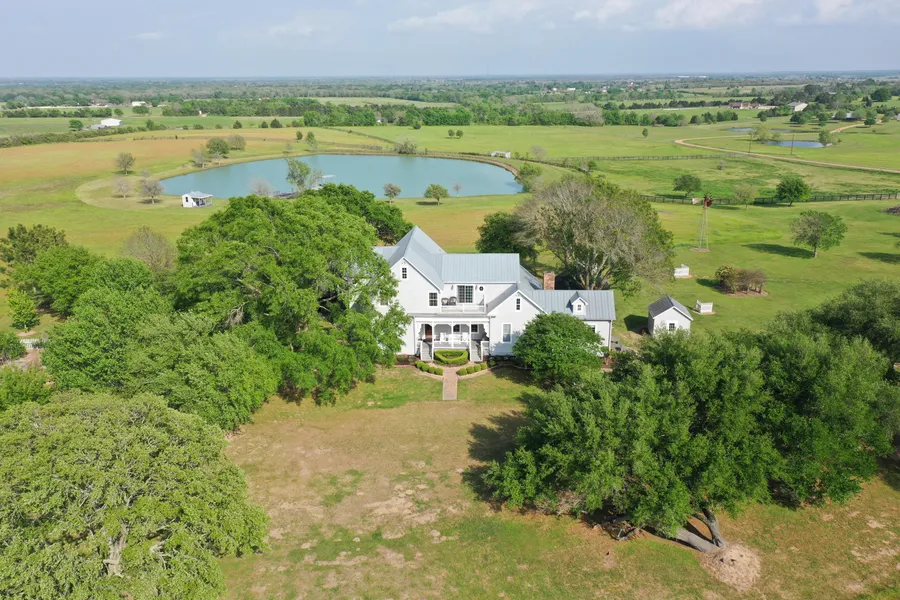 Built in 1875, this classic and charm-filled piece of history takes you back in time but with todays modern-day amenities. Enter the iron gate and follow the wonderland of oak trees that lay the foundation for a beautiful story while admiring the abundance of vibrant Texas wildflowers dancing in the breeze. This stunning 4,693 square foot fully-furnished home, sits hilltop on almost 63 rolling acres with 4-6 bedrooms, 5.5 bathrooms, views from every room, a 35x17 chefs kitchen with soaring ceilings and its own fireplace with a picture-perfect window overlooking the pond. The shiplap, bead board, wood beams, original floors and claw foot bathtubs add character to this amazing home. Entertain in the formal sitting room, the custom bar with built-ins, the family room or take it outside to enjoy the 3 acre stocked pond with a full ecosystem in place. Ride your horses in the arena, pick fruit from the orchard, make your own wine from the mature grapes, cook pizza in the oven imported from Italy or relax under one of the outdoor living areas. The hay pastures have been meticulously maintained and provide an agricultural exemption to keep taxes low.