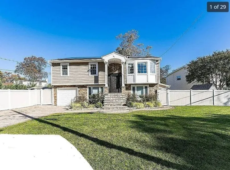 Luxury Retreat on Long Island: Modern Elegance Meets Resort-Style Living.... Discover effortless luxury in this exquisite 4-bedroom, 3-bath turnkey home. Tesla solar panels cut energy bills in half, smart home technology enhances every moment, and a fully sunken home theater awaits..... Impeccable Craftsmanship Inside:::: Gourmet chef's kitchen: Thermador appliances, induction cooktop, large granite island, stunning backsplash Spa-like baths: jetted tub, frameless walk-in shower, dual vanities.... Elegant details: new hardwood floors, vaulted/coffered ceilings, wainscoting, crown molding.... Main-level primary suite with a generous walk-in closet.... Versatile lower level: second living room, kitchenette, laundry, heated movie room.... Resort-Style Outdoor Oasis:::: Heated 7-ft-deep pool, fire pit, expansive paver patio, gazebo, lush irrigated lawn, and striking curb appeal with paver driveway..... Smart & Sustainable Living:::: Whole-home lighting control, Nest doorbell, intercom, security system, and brand-new central AC (upper level)..... Prime Location:::: Quiet, serene neighborhood with easy access to parks, shopping, dining, I-495, Southern State Parkway, and NYC..... This rare gem effortlessly blends peaceful productivity with vibrant entertainment..... Contact us today to schedule your private tour-this exceptional home won't last long.