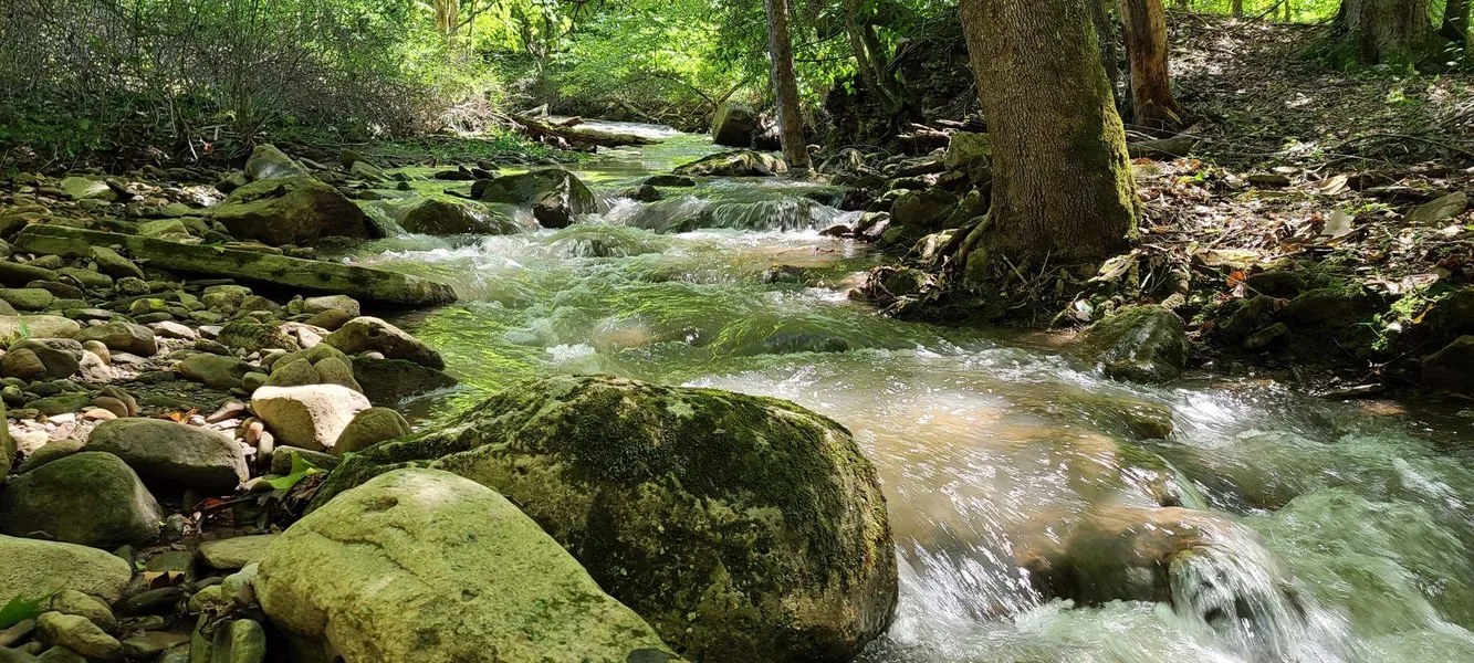 In the early days of Virginia, the area now comprised of the counties of Highland and Bath was considered the frontier and its mountainous terrain and rural character still give the area the feeling of being wonderfully removed. Public lands cover more than half of Bath County and about 30 percent of Highland County. The area has a well-deserved reputation as a destination playground for outdoor enthusiasts. The rugged Allegheny Mountains serve as the area's backdrop and provide endless hiking, horseback riding, and mountain biking, while the surrounding rivers and streams are known for some the best fly fishing in Virginia. The cold, clear waters of the endless mountain streams and the Jackson River hold excellent populations of rainbow, brown, and native brook trout, and warmer water rivers such as the Cowpasture hold trout seasonally, as well as smallmouth bass and other warm water species.
