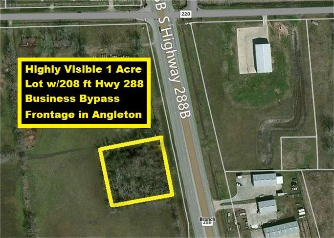 Highly Visible 1-Acre Lot with 208 ft Highway Frontage on the Business Bypass of Highway 288 in Angleton Just South of CR 220. Outside City Limits. Lot has Electricity but Needs Well & Septic. Traffic Count in 2013 was 11,176 Cars per Day Passing the Property. Surrounded by Mobile Home Parks & Commercial Businesses. Hwy 288B is High Traffic Hwy Connecting Angleton to Lake Jackson, Freeport Chemical Plants/Refineries & Gulf Beaches/Marinas. Perfect for RV Park, Hotel/Motel, Office/Warehouse, Truck Parking Lot, Mini-Storage, Urgent Care, Retail Center, Medical/Dental/Animal Clinic or Commercial Business w/Billboard for Maximum Exposure. Low Taxes! No Known Zoning & Restrictions. Survey Available!