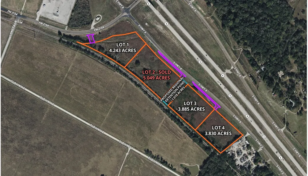 Prime location with direct access to Highway 6 and FM 2154, major corridor to Texas A&M University & Kyle Field