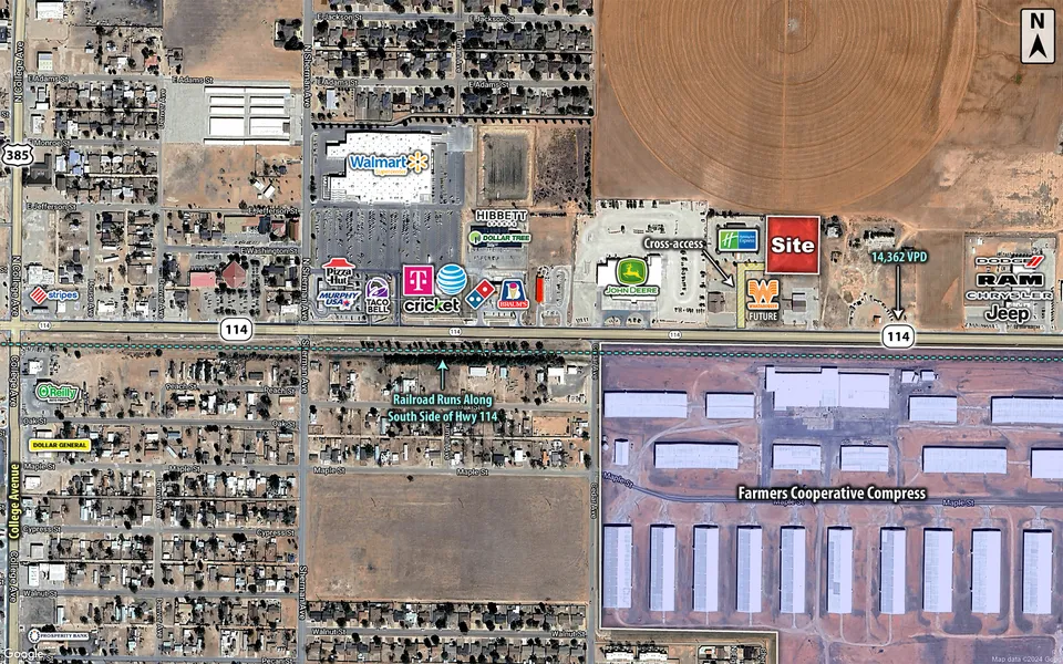 This prime development land offers an exceptional opportunity just off Highway 114 in Levelland, TX, strategically positioned in a bustling retail district adjacent to major establishments like Walmart, Holiday Inn Express, Braum’s, and the soon-to-be Whataburger. The property boasts excellent visibility and accessibility, with essential utilities readily available, making it ideal for commercial, retail, or mixed-use projects. Levelland is a growing market with a steady demand for retail and services, bolstered by the site’s proximity to local amenities like schools and parks, presenting developers with a unique chance to capitalize on a thriving commercial hub.