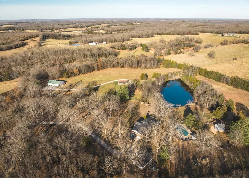 This gorgeous 24+acre property is custom throughout! A full brick home featuring three bedrooms, three full baths, and custom solid woodwork throughout. The gourmet kitchen features Brookwood cabinetry, granite countertops, a walnut dining countertop, a Five Star 6-burner gas double oven range, hand-hammered copper hood and double farmhouse sink with a beautiful window that overlooks the lake. Also included is a freestanding Boos antique butcher block for all your meal prep. On this level there is also a formal dining/living room with a custom woodburning fireplace, family room and three bedrooms including an ensuite master bedroom and two other bedrooms and a truly gorgeous main bathroom. The lower level is ready for entertainment or to accommodate an extended family complete with an entertainment kitchen with walnut countertops, antique farm sink, a refrigerator and a full-room pantry that is complete with a full-sized standing freezer. There is also a barroom that is out of this world and another room currently being used as a storage room that could easily be used as another bedroom. On this same level there is a laundry room/craft room and a gym with French doors that leads to the outdoors but could be a dog-room, a playroom, a hairstylist salon-you dream of what it could become! There is a family room that includes a built-in office area. And not to be outdone, the most glorious four-season sunroom leads from the family room to the outdoors and has a Jotul propane stove for coziness. The house has three heat sources a gas propane forced air furnace, a 325-gallon wood fired water furnace that can also be used to heat the pool and baseboard heaters. And of course, central air conditioning. There is an oversized three-car detached garage and a galvanized covered dog pen on a concrete foundation to be used as intended or would be the greatest chicken coop of all time out of sight behind the garage. A beautiful 20 x 40 inground pool with a cabana is an entertainer’s fantasy! Don’t worry about the little ones as the pool is surrounded by a pretty wrought-iron fence with two locking entry gates. One of which leads to the beautiful garden. The crown jewel of the garden is the custom-built timber-framed potting shed (this beauty didn’t get delivered on a trailer!) with a concrete foundation and stained floors and is ready to be used year-round with a mini split and overlooks the one-acre lake with a composite dock. There is a 20 x 40 building (built in 2020) featuring a loft, 15’ ceilings, a wood-burning stove and was constructed using 2 x 6 and 2 x 8 construction. And since it is fully foam insulated, it is the perfect place to use as what the current homeowner’s use as a family recreation center or to be converted into another living area for those out-of-towners, in-laws, workshop you get the idea! In addition, here is a customized 40 x 60 barn that includes 24 soffits, many windows, 12’ side walls, large workbenches, three bays with 10’ x 10’ doors and concrete floors The property is perimeter fenced and partially interior fenced with acres of pasture that would be perfect for the homesteader to raise animals or have family members build their home for that generational style living that so many are gravitating toward. Located conveniently to I-44 with all your needs just a few miles away and equal distances to either St. Louis or Rolla for your big-city needs.