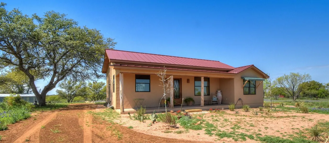 PRICE REDUCTION ON A VERY SPECIAL PROPERTY *** PERFECT WEEK END RETREAT OR FULL TIME PROPERTY *** Step into this "Casita", & you'll feel like you're in Santa Fe. This stylish newly built home is filled w/high end features & offers an open great room & kitchen/dining area w/ceilings soaring to 12 ft. Large double pane Hi Performance Windows bring the outside in, w/Bamboo shades for privacy. The custom kitchen is filled with beautiful site built pine cabinets & a 4'x5' pine kitchen island with storage. Travertine tile covers the Kitchen countertops with Mexican Talavera Backsplash, & the Hood Vent is also accented with the Talavera tile as well as a decorative metal insert, with the interior of the stainless cook range being a brilliant Cobalt Blue! The lighted niches above the cook range & the beautiful light fixtures put the finishing touch to this stunning kitchen. Wake up in the morning to views of the Hill Country Mountain range from your bedroom windows or enjoy those same views from your covered front porch or from under your Pergola on the back. The utility room also has a built in pantry area as well as more built in shelves in the living area. Spacious bedrooms & a beautiful walk-in floor to ceiling tile shower offers you a refreshing area to relax. The well has recently been equipped with a new pump, new storage tank, & there's a new septic. An old metal barn has lots of storage & workshop area, with several smaller sheds scattered about the property. The property is perimeter fenced and cross fenced and backs up to a very large game fenced ranch. This is a great Ag Exempt property & close to the golf course located on the beautiful Llano River, so bring your horses, golf clubs and kayaks!
