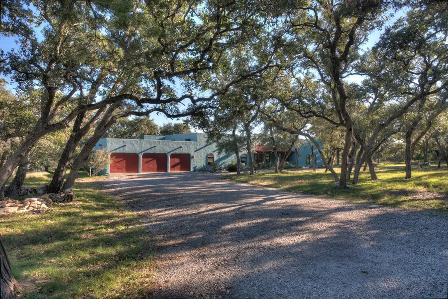 Looking for privacy and lots of living space in a rustic, Texas setting? This is it... You'll feel like you're south of the border in this wonderful Hill Country Hacienda with huge, 3-car garage, over-sized and heated swimming pool and spa, covered deck for entertaining. Huge kitchen and living space with Spanish style fireplace and wet bar ensure you'll have all the comforts you need. Beautiful, arched picture windows provide a calm view of the pool and countryside. On the other end of the home is a large Master suite, also with pool view and access, with sitting area, its own fireplace and equally roomy master bath. Both shower and large tub and twin vanities greet you while there are private washer/dryer connections for master washing convenience. Huge, post style beams and arches provide Spanish elegance with Saltillo tile flooring throughout and tile accents on the window arches and kitchen counters. Warm, lively and spacious, this home is built to relax and entertain.