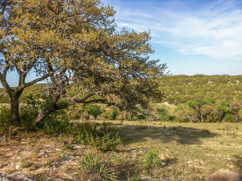 Land Description: Surrounded by hills, this gorgeous Hill Country ranch retreat features big views throughout. A dry creek cuts through the property creating a valley of native grasses. A dry pond sits in the valley and can be easily re-sealed. The northern border has been left relatively untouched creating habitat for native wildlife the perfect place for hunting. Another dry creek runs below the home site and includes groves of mature trees.
