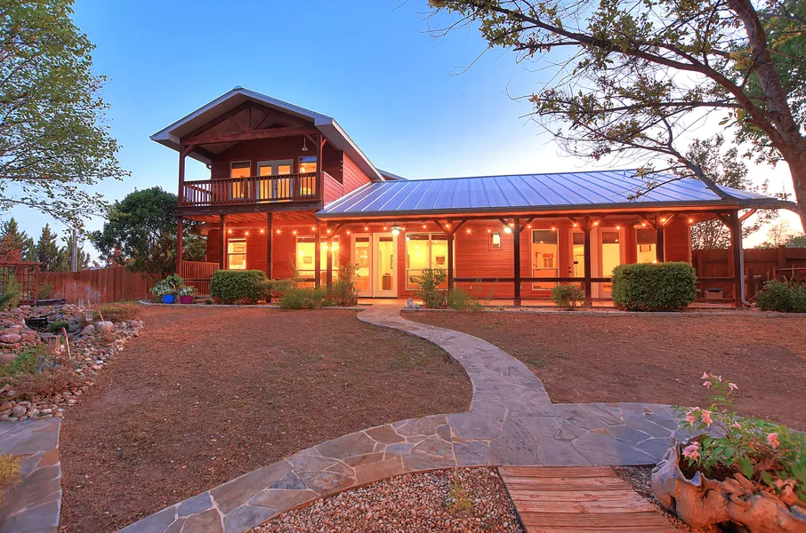 Have you been looking for a hideaway home on the beautiful Guadalupe River? Situated just east of Center Point, Texas you'll find this captivating Hill County River Home. Upon entering the property through the automatic gate, Live Oak trees line the driveway up to a custom built 2922 square foot home built in 2007. Upon entering the home, the spacious living room with high ceilings (vaulted and beamed), benefits from the natural light of the multiple windows, illuminating the space while affording a great view of the back yard. The centerpiece of the living room is the stately limestone floor to ceiling gas fireplace. The island kitchen is a culinary delight, featuring a cooktop, breakfast bar, and custom cabinetry. The master bedroom has its own private outdoor access, a private bath boasting a dual vanity, jetted whirlpool tub, and a modern glass shower with dual shower heads. Both of the guest bedrooms are on the second story, each featuring their own ensuite bathrooms and walk-in closets, as well as private balconies with long range views. Adjacent to the living room, you'll find a fully functional wet bar as well as an office nook, complete with shelving and additional storage. On your way to the garage, you will find a utility room across from a dedicated half bathroom, as well as a large secondary living space. The secondary living area adjoins the main home, you can think of it as a separate area set up for indoor recreation. It could be a great place to watch Saturday football games, set up a pool table or ping pong table, or even utilized as a bunkhouse for loud children or adults who may choose to keep different hours than the occupants of the main part of the home. This separate living area is next to the spacious 3 car garage which provides additional storage and safe harbor for your vehicles. There is no shortage of outdoor living options on this property. If the summer heat is feeling oppressive, hop into the saltwater pool and relax in the covered Tiki bar . The backyard is just above the Guadalupe River, and you have your choice of porches or decks to relax and take in the natural beauty of the flora and fauna. All types of wildlife use the river as a natural thoroughfare including ducks, geese, cranes and hawks. The nearby bat colony can reduce the mosquito population as they make their nightly migration for food. Whitetail and Axis deer are a common sight in the area as well. This property features 125 feet of river frontage, accessible through a modern set of steel stairs. The property is on the high bank side of the river, which can keep the structures out of harm's way should the river flood during times of heavy precipitation. Additional highlights include a 16'x 24' climate controlled workshop as well as a full RV space complete with power and septic hookups. Call now to make this Hill Country River Home yours today!
