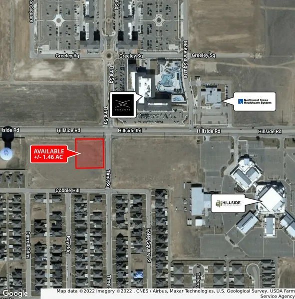 /- 1.46 Acres. Access from both Hillside Rd & Time Square Blvd. Utilities to site. Will subdivide. $12-14 PSF
