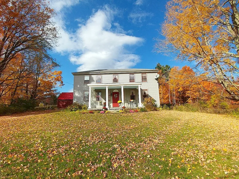 Hilltop Farm is set on 71 acres in the foothills of Mount Sunapee. Steeped in history, this 3BR/1BA Federal homestead was built in 1779. Spacious interior has high ceilings & is naturally sunlit. Appointed with plaster walls, wide board wainscoting, Indian shutters and gunstock corners. One of the bedrooms is stenciled with what looks like the work of Moses Eaton.. Barn, 10 acres in field, trails, pond, views.