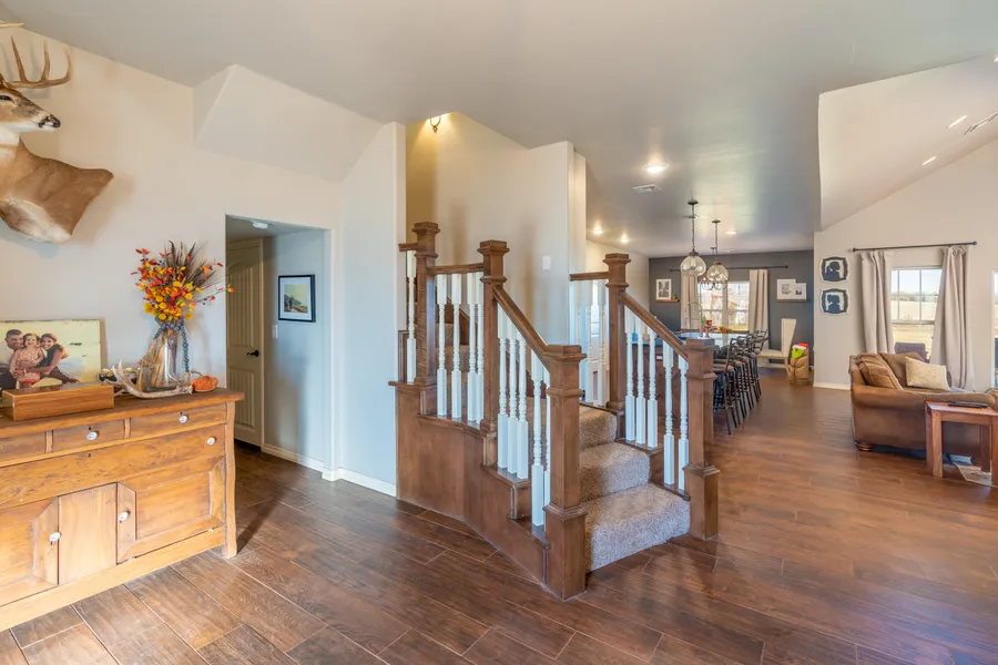 Travel the 1/4 mile private drive that accesses the 40 acres. The 3,500 sq ft custom built home sits on a hill in the center of the 40 acres and offers beautiful views of the land. The home offers 4 bedrooms, 2 1/2 baths, office and 3 car garage. It boasts all of the charm and coziness you are looking for! The open floor plan and large windows gives a beautiful view of the surrounding acreage. The beautiful staircase in the entry leads to a multi-level up stairs, with a large room at the mid level that could be used as another bedroom, theater room, or storage room. At the top level are two bedrooms, full bath, and a game room. The spacious master bedroom and bathroom are on the main level and include a large walk-in closet, double sink vanity, walk in shower and jetted tub. The kitchen is large with an adjacent breakfast nook and formal dining. You are sure to catch some of Oklahomas st...