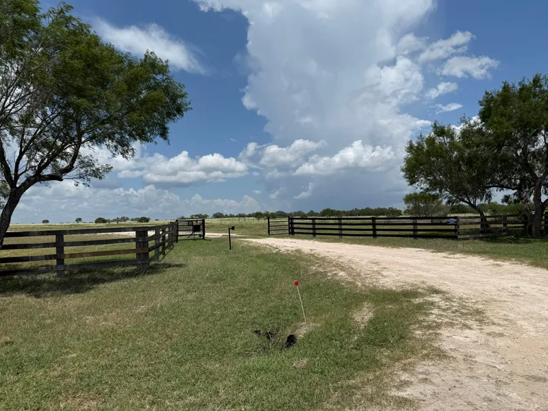Wow! What a View! This hilltop ranch offers a 360* panoramic view for miles around. The home is situated on top of the hill where you can see the cattle and wildlife peacefully grazing around the house. The 100 acre property is located near Oakville, Texas and has mostly grassland. The lovely home is 2,175 square feet and has 9' ceilings in the living area and master bedroom. The open floor plan makes it great for entertaining and family life. Not only are the ceiling high but they have beautiful coffered ceilings in most rooms. Living room has beautiful columns for accenting the decor and a nice fireplace with propane logs. It has a new central air and heat unit. The roof has 45 year laminated composition. The large covered back porch is perfect for outdoor dining and watching South Texas sunsets. There is a large concrete slab for future pool, outdoor center or guesthouse. Also, there...