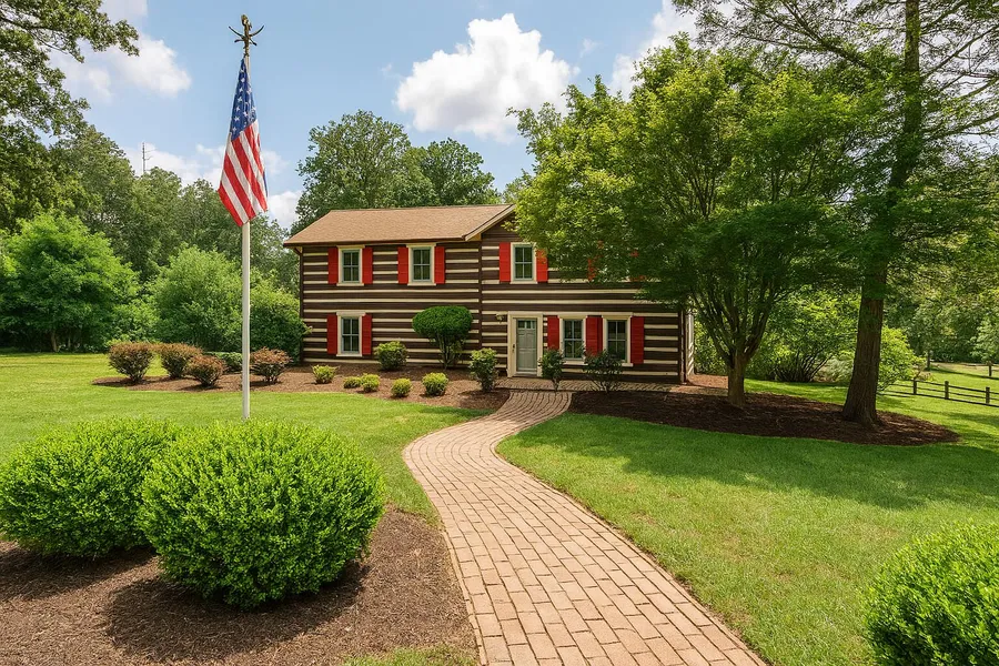 This 3,250 sq. ft. hand-hewn log home offers 4 bedrooms and 3 baths. Originally contstructed from 3 historic Charleston log cabins & reassembled on site, the home features wormy chestnut walls & ceilings, authentic cabin doors, & original maple hardwood floors. Inside you'll find dual primary suites- one upstairs, one downstairs - ideal for extended family & guests. Renovated bathrooms, 4 large walk in closets, and a spacious layout offer modern livability wrapped in rustic elegance. The oversized kitchen is a chef's dream, complete with granite countertops, 2 ovens, stainless steel appliances, flat top range, vintage custom cabinetry & more.
