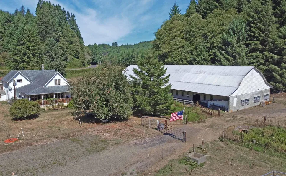 Historic farm near Newport on Oregon’s central coast. The 1897 farmhouse was enlarged in 2011; all plumbing and wiring were modernized. The kitchen is made for large gatherings, with huge island, 2 ovens, 2 large sinks, 2 dishwashers, five-burner gas stove, and spacious pantry. Set in a serene valley with watchful neighbors, yet conveniently close to highway.18.65 total acres, with fenced fields for growing dry-farmed hay or grazing livestock4 bed / 3 bath main home, 2932sf; master BR and 3 full baths downstairs3 bedrooms and 13x40 utility room (plumbed for future bath) upstairs1 bed / 1 bath MFR, 552sf; enclosed within outer roof and wall sidingLarge enclosed rec room separates the dwellingsHistoric barn is 150 feet long with horse stalls, storage, mangers, and huge loft spaceSecond barn has large access doors for equipment / vehicle storageTool shed, chicken coop and caged run, 28 foot deep double carport behind houseTwo year-round streams and pond on propertyElk, deer, mink, eagles, otters, foxes and other wildlifeWell with UV purification; conventional septicFruit trees in the yard, and large attached greenhouse220v power to house and both barnsHuge in-ground cistern behind barn is kept full by water tableJust minutes to Newport, with its spectacular scenery, great beaches, and famous Oregon Coast Aquarium. One hour to the I-5 corridor, and 2.5 hours to Portland. The gentle coastal climate means green pastures and no need for A/C. Scroll down to view aerial map with embedded photos and videos, and click the “Tour” button for an aerial tour of the property.