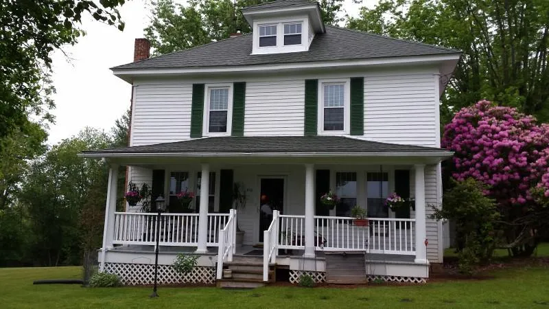Nearly 1800 square feet of living space, this home has the perfect amount of space for a potential bed and breakfast. With 4 bedrooms and two baths, master bed and bath on main with a secondary bath with 3 bedrooms upstairs. An updated kitchen to include counter tops and cabinets makes this kitchen have a great country feel while looking out the kitchen windows. In the living room a beautiful Vermont Woodstove sits ready to be sure you are cozy and comfortable. In addition to the living room there is a sitting or dining room area which has a beautiful set of French doors. The laundry room of the home is equipped with a recently purchased washer / dryer combo and is just off the kitchen area at the rear of the home. This room has a convenient entry door outside if you would like to have a fresh laundry scent. The entire home has been recently painted and still has the original hardwood floors throughout the home except the bathrooms. Electrical updates were made to the home approximately two years ago. Both a basement and attic serve the home well for extra storage area. Windows have been replaced in the entire home and have a lifetime guarantee transferable to the new owner. The home can be heated by wood or oil, and offers central air for the summer time. A paved driveway with a large covered front porch and swing makes this home immediately have an awesome curb appeal. The landscaped area around the home of flowers and shrubs also adds to its appeal.
