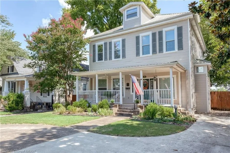 This fabulous historic 4 bed / 2.5 bath home maintians vintage charm yet artfully integrates modern comforts! Beautiful, original hardwood floors and millwork recall its original craftsmanship while updated windows, electric, HVAC, metal roof, kitchen, bathrooms, etc. ensure contemporary convenience. Primary bedroom with ensuite bath located on 1st level, 2 living areas, large bedrooms, renovated bathrooms. Perfect for entertaining or large family gatherings; plenty of parking with circle drive, additional side drive and covered parking in back. Stately yet comfortable, well maintained and move in ready!