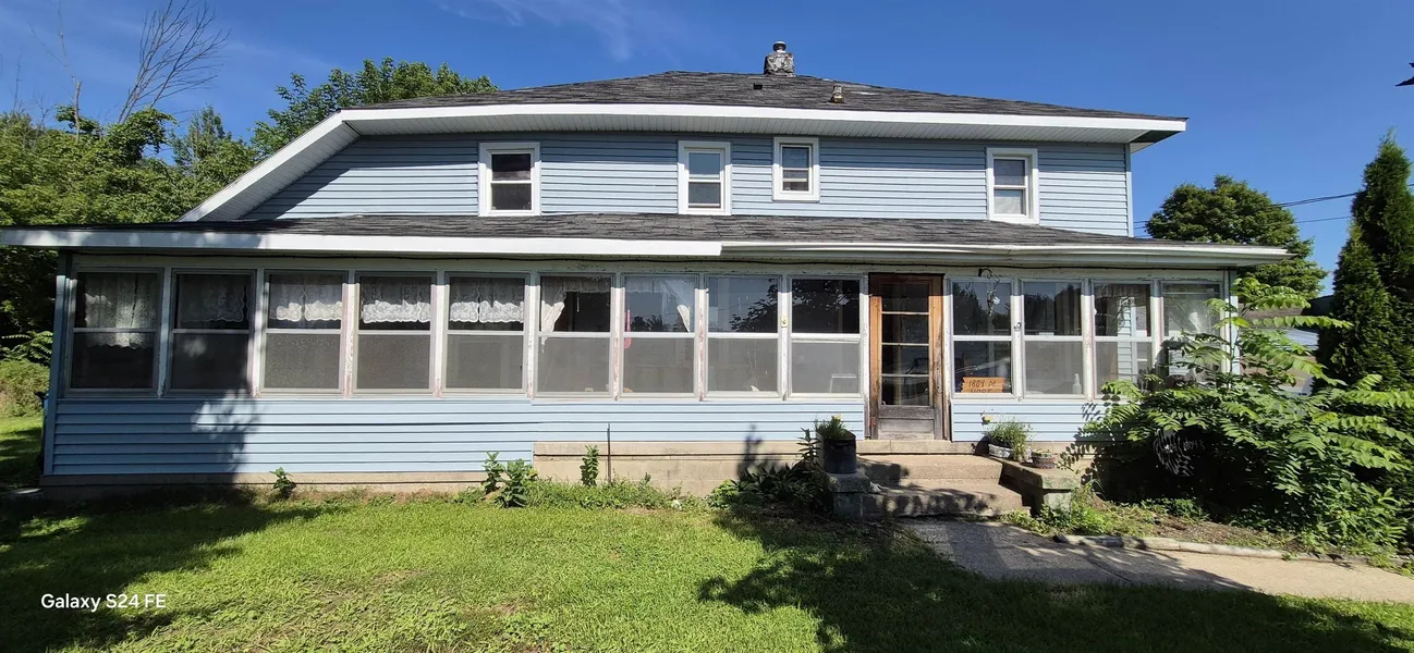 Spacious home between Midland and Sanford. Three bedrooms, a storage room and bathroom on the upper level. Hardwood floor in the living room. There is a dining room, kitchen and main level bathroom. The bathtub is in a separate room. There is also a master suite or in-law quarters with one bedroom one bathroom, kitchen and living room and the entrance to the partial unfinished basement. First step is steep. Be careful. Has its own driveway and entrance on the north end of the shared covererd porch. There are repairs and updating needed in the home. There is a large back yard. Two car detached garage. Shed is included. City Water. The Pere Marquette Rail Trail is the other side of Saginaw Rd. It is a 30 mile scenic paved trail that runs between Midland and Clare, Michigan. Great location. Property is 1.92 acres with frontage on Hope Rd and Saginaw Rd.