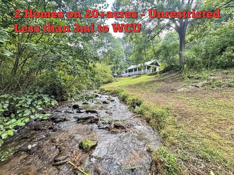 *MOTIVATED SELLERS. BRING OFFER* 2 Homes on 20+ Unrestricted acres in Cullowhee near WCU. Owners have done many tasteful renovations & repairs to both homes within the recent years. The cabin is 2 Bed, 1 Bath layout with a large living room w/ woodstove & attractive built-in shelves, nice bathroom, new beautiful kitchen, laundry/utility room, big covered porch over looking Wayehutta Creek below. The upper house is also a 2 Bed, 1 Bath layout w/ attractive finishes. The home has an attractive living room w/ woodstove & tongue/groove ceiling, spacious bathroom with adjacent laundry space, entry foyer with built-in closet space, large kitchen w/ dining area. The property has gated access w/ paved driveway & parking area. There are multiple outbuildings for storage. The 20+acres is private & has an access road leading up to the upper acreage. The upper acreage has some good potential homesites w/ amazing views in multiple directions offering short range & long range views. This property has great location to a few local attractions making it a little more unique than other properties on the market. Less than 3mi to WCU making this a great investment property option.