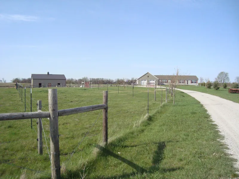 Beautiful, well kept acreage property that is ready for your hobby farm operation! Big, open kitchen with eat in area in this home built in 2004. Formal dining room, office area, living room, three bedrooms and two baths comprise the main level. More bedrooms and baths in finished, walk-out, basement! Geothermal heat, vinyl siding, private septic and water! About 15 acres are in row crop production and leased for additional income. A 56' x 44' metal-on-wood building currently houses livestock, but would work well for a shop or business headquarters! The property has numerous fenced pasture areas. Washer and dryer hookups at both levels. This acreage is located across the road from a state owned wildlife area.