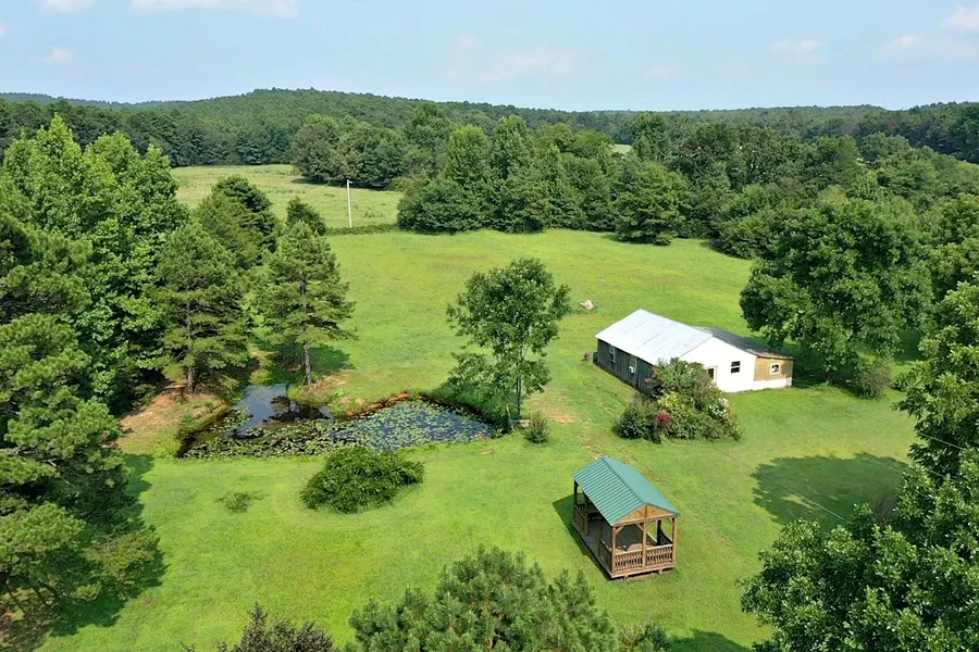 Beautiful 3 bedroom, 2 bath home on parklike, 5.9 acres. Shop with slab foundation, greenhouse with sprinkler system. Two ponds and a creek. Mix of woods and pasture, picturesque entrance with wood bridge going over creek. Pretty Gazebo and muscadine vines. Home has 2700 square feet, open concept kitchen and living, with vaulted ceilings. Pretty cabinetry & granite counter tops, breakfast nook and formal dining room. Sunroom and small office. Master bath has walk in shower & jetted tub. Total of 3 Bedrooms and 2 baths. Garage. Lots of amenities.