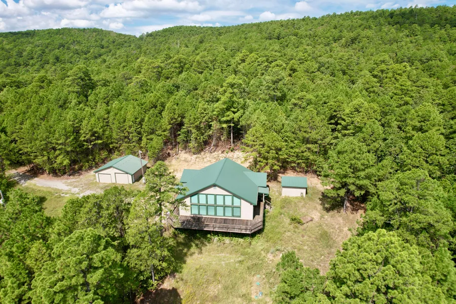 Terrain: Magnificent mountain land , sitting in the Jack Fork Mountains. Elevation ranges from 1,360 ft on the highest mountain to around 860 ft in the bottoms of Hog Eye Creek. The many mountain tops create stunning views and panorama's of the surrounding landscape. The terrain also offers many draws, creek bottoms, canyons and mountain tops that create the perfect landscape for any outdoor activity.