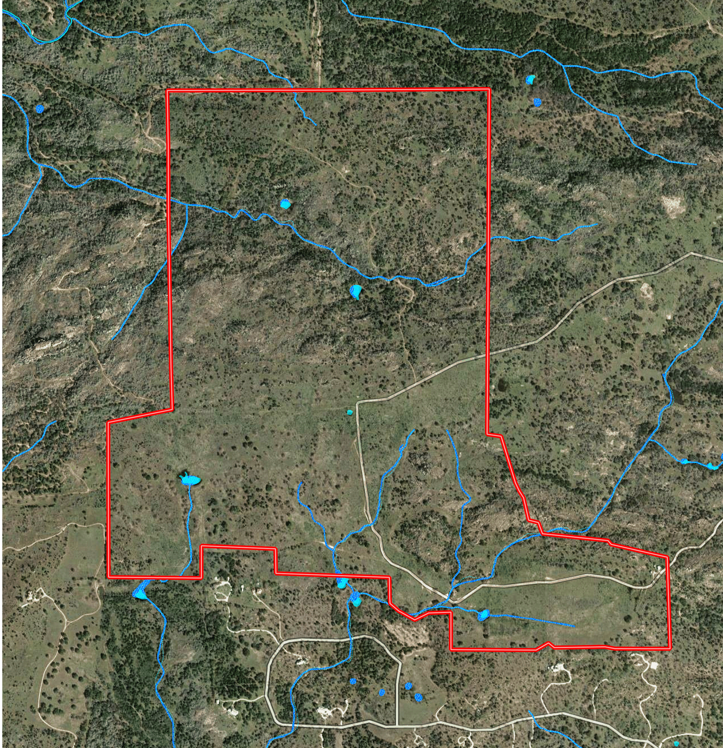 Seasonal Hickory Creek transverses the ranch and offers water for the animals and occasional waterfalls for the ranch owner to enjoy. There are also a couple of surface tanks on the ranch. Water is also provided via a windmill and water well.