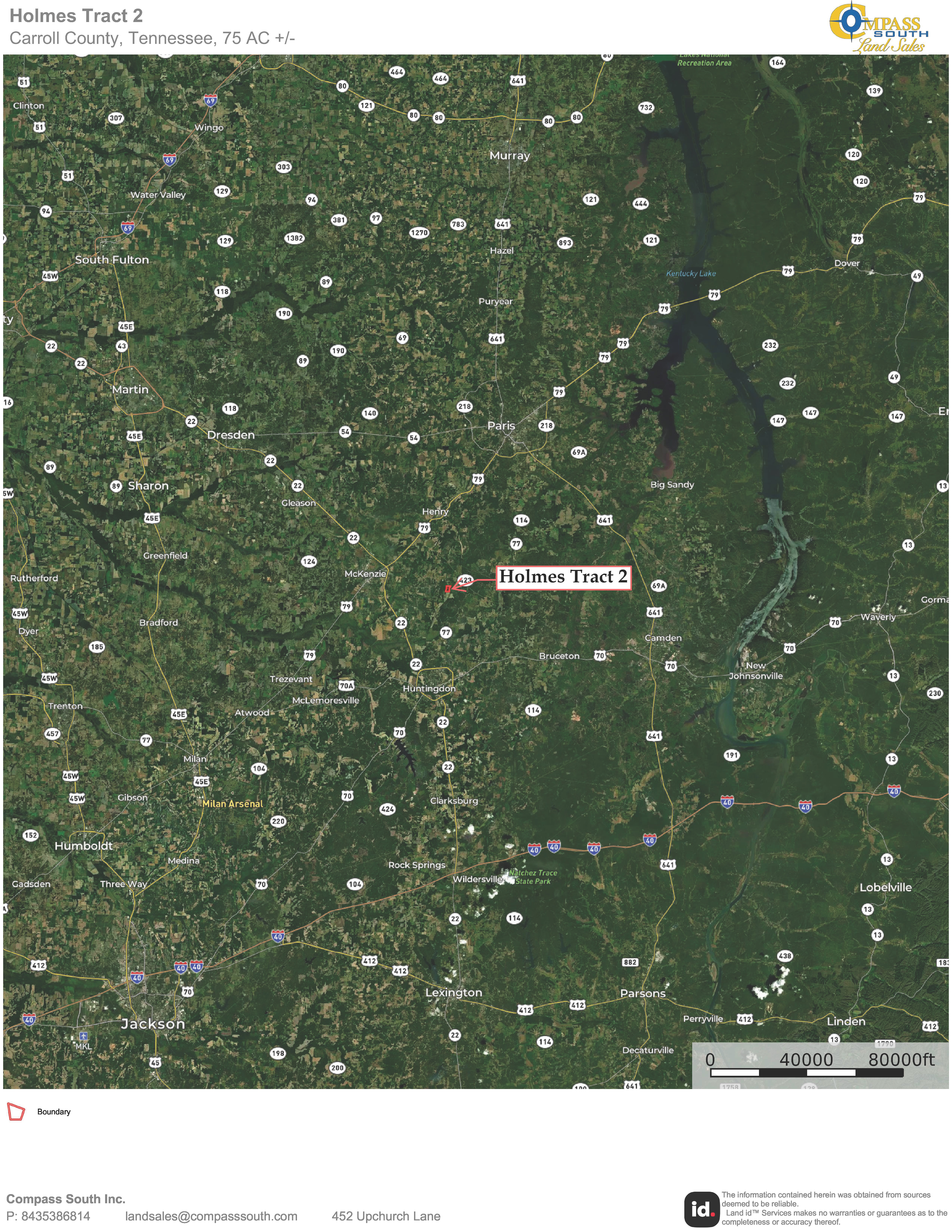 Within an hour drive of Jackson, TN and located between Paris, TN and the town of Huntingdon the Holmes Tract offers a quiet rural retreat amongst numerous large farms and other timber properties.