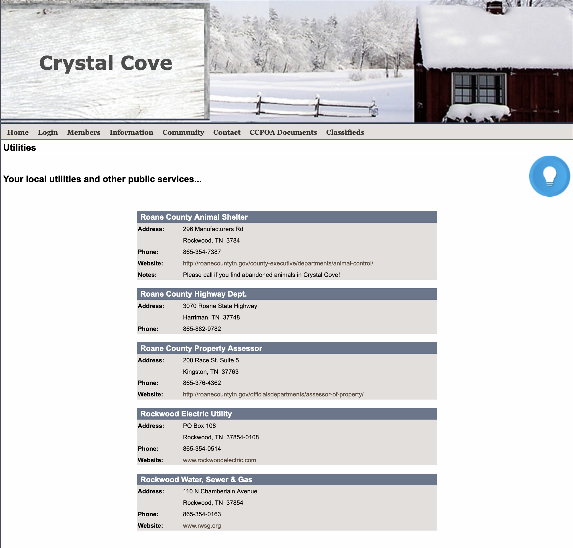 from the Crystal Cove Association. Enter the community through the covered bridge and