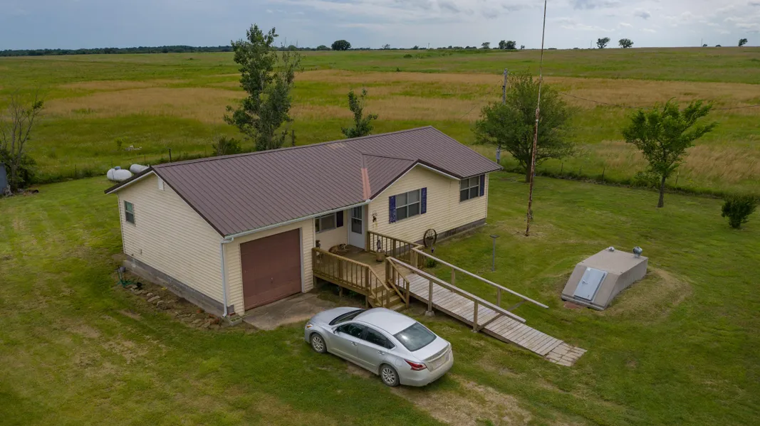 Low maintenance home. Metal roof, vinyl siding. Handicap ramp. New storm cellar. 30x18 livestock shed, steel frame with 3 stalls. A 10x20 storage shed. Excellent pasture, no waste. 1 pond, no neighbors.