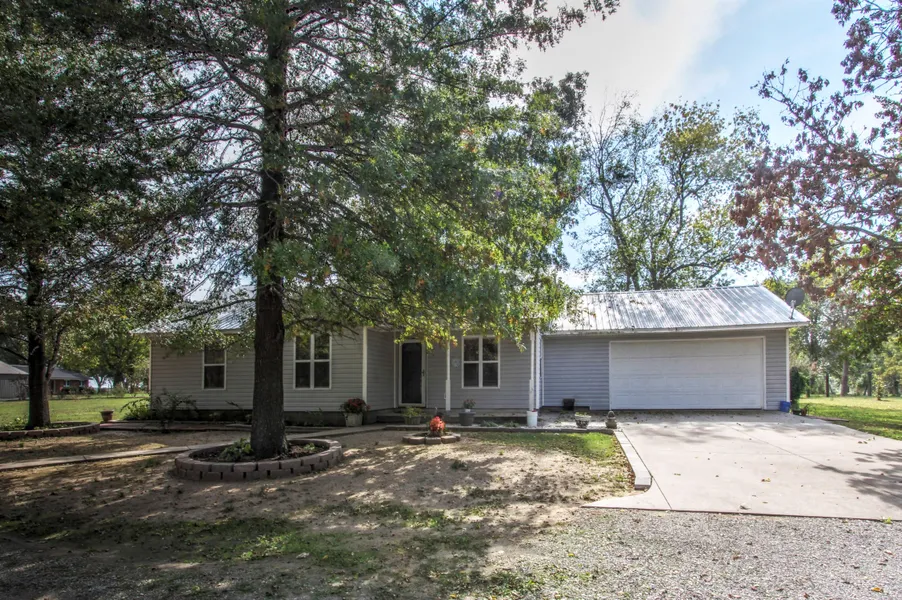 Park-like setting. 3 bed, 2 bath home on 13.75 acres located in Delaware, OK. Property back up to Verdigris River. Low maintenance home, vinyl siding, metal roof, storm shelter, metal shop, and 2 storage units.