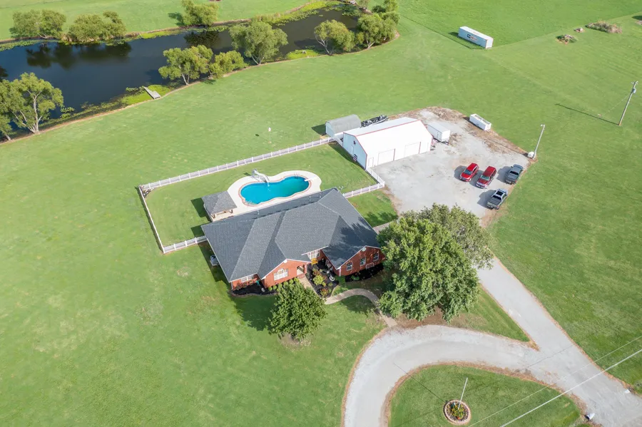 This home has it all! The 4 bedroom, 2.5 bath house sits on a beautiful 7.21 acres with a 1 acre stocked pond. At 2,490 Sq. Ft. it is the perfect size for you and your family! This home has a large living room and kitchen that includes all appliances. The master bedroom features its own bath with a whirlpool tub, a separate shower, and a walk-in closet. On the other side of the house are the other 3 bedrooms. 2 of which include, built-in shelves/desks and walk-in closets. The HVAC, roof, and hot water heater are all less than 5 years old.