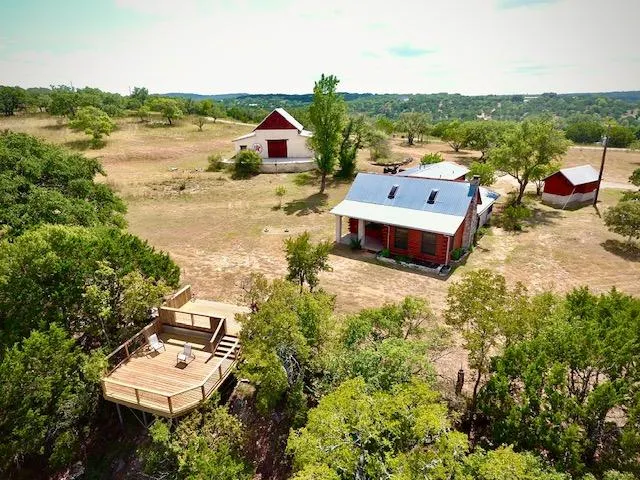 A true one-of-a kind paradise! 10.9 acres with a beautifully remodeled 4/3.5 log & stone home sitting along a bluff overlooking your beautiful 500+ feet of Sycamore Creek! Enjoy the scenery from the viewing deck or relax on the 1000+ square feet of patio off of the amazing Timber-frame barn. The two-story barn is a piece of art with it's mortise and tenon structure! Take note, there is no sheetrock in the entire home or barn, all natural wood and stone! Half of the acreage is cleared with grassy pasture and lovely oaks while the other half is wooded down to the rocky bottom creek with beautiful waterfalls and a swimming hole! An additional 11.87 Acre adjacent lot (8), can be bought together or separated and even taken down to 4 acre lots per deed restrictions.
