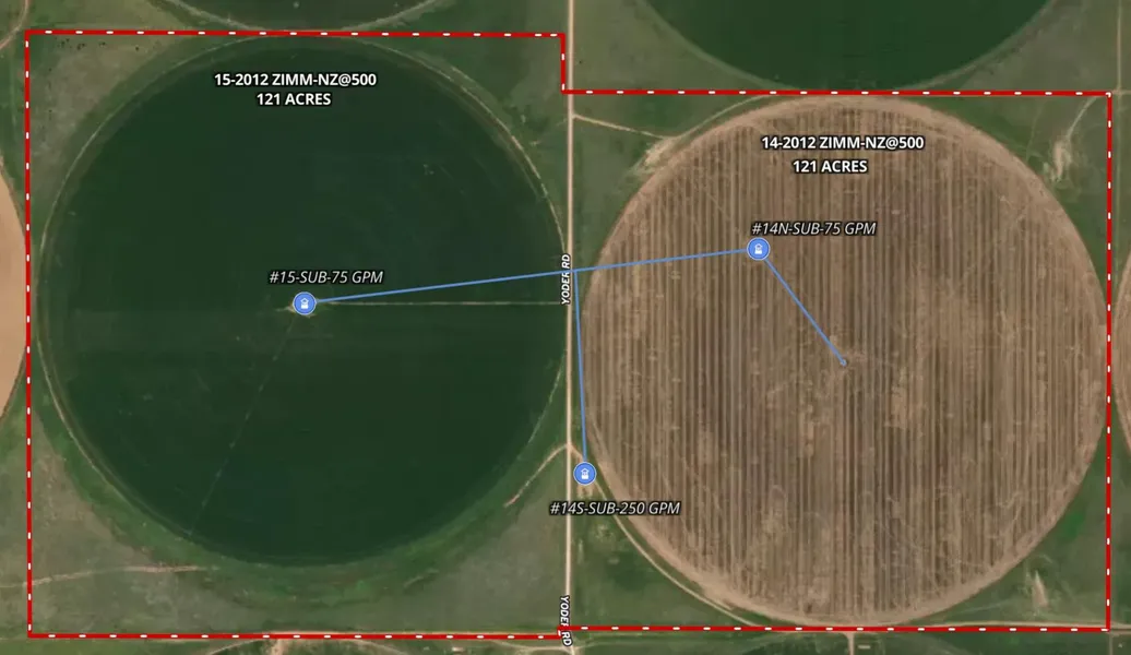 Located on Yoder Road in Dallam County, this 1/2 section has two 2012 Zimmatic pivots and three irrigation wells. All three wells are powered by submersible pumps and provide an estimated total of 400 gallons of water per minute. This farm is located within delivery distance of several large cattle feeding operations and grain storage facilities allowing for cropping flexibility. Give us a call to talk in more detail about this opportunity.