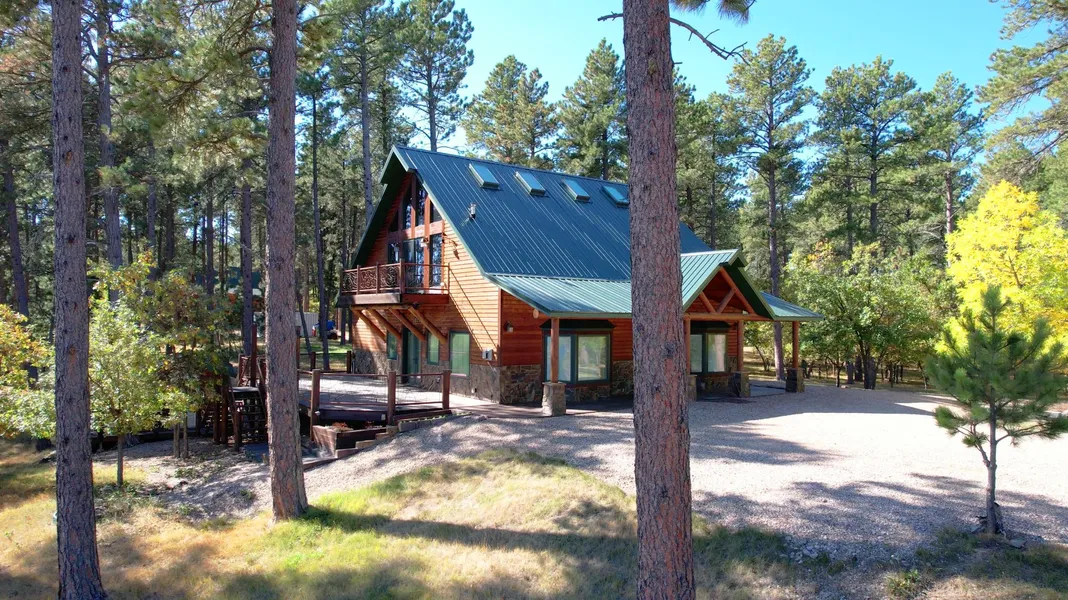 Spectacular Home nestled in the pines providing comfort and privacy with stunning views of Bear Butte, Apple Springs along Boulder Canyonand the beautiful Black Hills of South Dakota. The Custom home designed with meticulous care includes beautiful maple flooring throughout the upper level, vaulted ceiling, complete living area with kitchen, bedroom, and open deck to enjoy the outdoors. The main level includes hickory laminate flooring throughout, numerous warm wood tones, custom cabinets, built in matching dining table and office desk, a cedar closets with hideaway space, bay windows, lovely gas fireplace, expansive master bedroom with built in drawers, pella windows and so much more!!! Thelarge shop 30x40 is roomy with complete workspace including cabinetry, storage, shelving, and floor drains. The shop has permitable septic for bathroom addition. There is an upstairs finished bonus room for extra guests or and entertainment room. The covered patio with log beams and expansive deck are greatfor entertaining or for peaceful enjoyment of the wildlife and views. The home has a lovely insulated/heated She/He Shed for relaxing in or extra space.